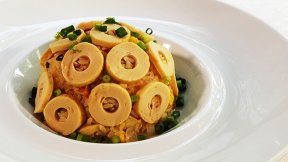 たっぷり入った押し麦のおかげで、ヘルシーなだけでなくベチャッとならず、程よいしっとり感のおいしいピラフに。