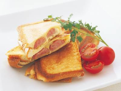 フランスのカフェメニューの定番を少しアレンジ。ふわふわのパンと、ハム&チーズの塩けがぴったりです!