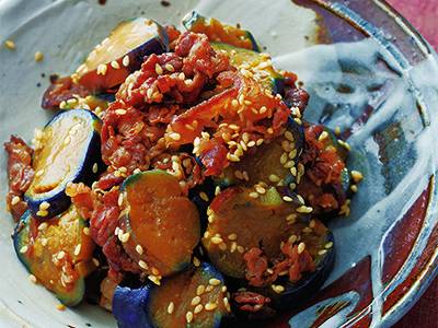 栄養たっぷりの緑黄色野菜・かぼちゃに牛肉のうまみも加えたボリュームたっぷりの炒め物です。しょうゆとバターの黄金コンビでごはんがすすみます!