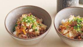 甘辛く炒めた具をご飯に混ぜるだけ。お弁当に入れたり、おにぎりにするのもおすすめ!
