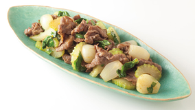 しっかり味の牛肉春雨をレタスに包んでさっぱりといただきます。シャキシャキのレタスとツルンとした春雨のコントラストも絶妙です。