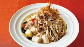 柔らかく煮込んだ肉と野菜を、相性抜群のマスタードであえた「煮込みサラダ」。うまみがギュッと凝縮されたゆで汁も「飲むサラダ」として添えましょう!
