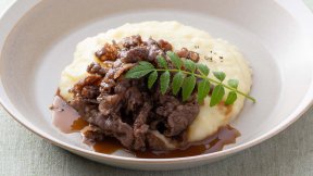 2種のポテトを使ったほんのり甘いスペシャルマッシュポテトに、甘辛味の牛肉を添えて。