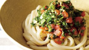 ツルツルっとした食感と喉ごしがたまらない「うどん」。冷やしても温めても美味しくいただけるので、「冷やしうどん」「焼きうどん」「煮込みうどん」と、いろいろな調理方法で一年中楽しめます。便利な冷凍うどんをつかった簡単レシピも多彩です。「そば」もうどん同様、冷やしても温めても美味。そばつゆでいただくのが定番ですが、合わせる具材は多種多様です。そして、夏場に大活躍する「そうめん」。ゆで時間が短いのが魅力です。冷たいめんつゆでシンプルにいただくのもいいですが、温かいつゆで「にゅうめん」にしたり、炒めてもおいしくいただけます。