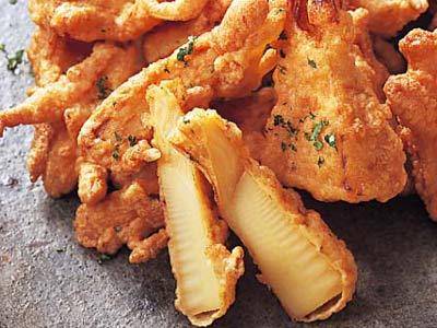 とうもろこしのプチプチした食感が楽しいかき揚げです。衣をつける前に下粉をすることで、まとまりよく。