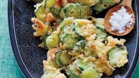 揚げたゴーヤーは苦みがやわらぎ、色も鮮やかになります。ちくわのうまみとの相性は抜群です。