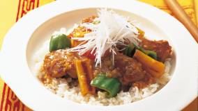 高たんぱく低脂質の豆腐でひき肉のかさ増しをした、やさしい味わいの和風カレー。電子レンジでつくるので余分な油は使わず、しかも短時間でできます。豆腐はしっかり水けをきって、パラッとほぐすのがポイント。