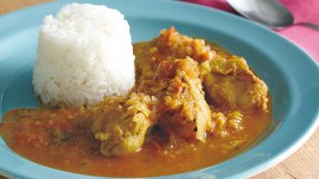 【スパイスでさらにおいしく】骨つきの鶏肉のうまみが、煮汁にじんわりしみています。フレッシュトマトの甘みと酸味もおいしさの秘密。