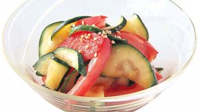カリッと揚げ焼きにした鶏もも肉に、やさしい酸味のトマト甘酢をからめていただきます。薬味野菜の爽やかな香りで食欲アップ!