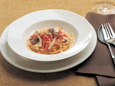 しめじのうまみを、ソースに移したパスタ。スモークサーモンの香りにもよく合います。