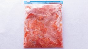 冷凍トマトは皮をむくのが簡単。冷たいまま角切りにしてつゆに入れ、冷たさとシャリシャリ感を楽しみます。