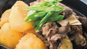 甘辛味のたれがからんだ肉の中にシャキシャキのじゃがいもをいれることで、味と食感のコントラストが楽しいおかずに。青じその香りで味わい豊かに召し上がれ!