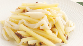 いか、じゃがいもの持ち味を生かしたシンプル炒めです。最後に酢を加えてさっぱりした仕上がりに。