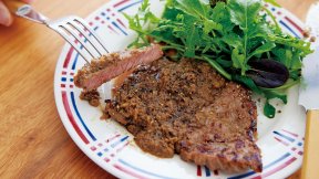 かきをソースに使った贅沢なステーキ。生クリームとニョクマムの組み合わせは試してみる価値ありのおいしさ。