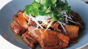 多めの酒を加えてゆっくりと煮込んだ豚の角煮は、あっさりしていて肉の脂が気になりません。大根と一緒なら、飽きずに食べられます。
