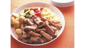 ご飯のおかずになる、飽きないおいしさ。スペアリブを白ワインで蒸し煮にし、肉にしみ込ませておくのがポイントです。