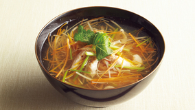 だしに梅干しを入れて煮出します。ほのかな梅の酸味と香りが隠し味。冷たいそうめんが一層おいしく食べられます。