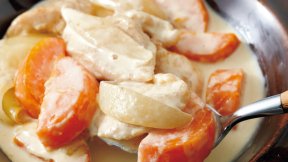 にんじんと淡泊な鶏むね肉を組み合わせ、蒸し煮にして繊細な味わいを引き出します。生クリームを使った、お手軽クリーミー味。