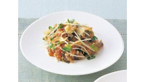揚げたあじを大根おろしたっぷりのたれにつけます。香味野菜ですっきりしているので、思わず箸がすすみます。