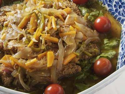 南蛮漬けを揚げる手間いらずのシンプル&さっぱりおかずにアレンジ!いろいろな料理に展開できる甘酢たまねぎは、ぜひ冷蔵庫に常備して。