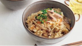 さばのうまみと栄養を丸ごと炊き込んだ絶品ご飯。水のかわりにほうじ茶で炊くので、ほんのり香ばしさも楽しめます。