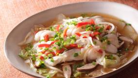 白い野菜類をじっくりと炒めて甘みを引き出し、たらの香りを生かした、色合いもやさしい煮物。