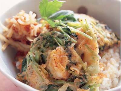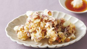ふきのとうはかき揚げにしてもおいしいですよ。桜えびのうまみが、ふきのとうの醍醐味(だいごみ)であるほろ苦さを際立たせます。