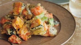 かき揚げ天ぷらはそのままおかずとしても、ご飯のうえに乗せて天丼にしても、そばやうどん、そうめんなどの麺類の付け合せとしても美味しくいただける天ぷらです。人参、玉ねぎ、ごぼう、春菊などの野菜と、桜えび、じゃこ、ちくわなど魚介系の食材を合わせて揚げた、かき揚げも人気があります。かき揚げはいろいろな食材をミックスしてつくれるので、そのレシピは無限大。冷蔵庫の残り野菜を材料に使ってもOK。手軽につくれる、かき揚げレシピを紹介します。