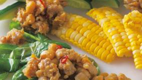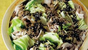 長芋と厚めに切った豚肉を香ばしく焼きつけ、しょうがのきいたみそだれをたっぷりからめます。