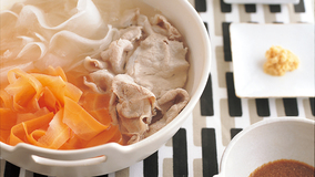 ピーラーで切った野菜が、シャキッとしておいしい。コンロでつくったら、鍋ごとテーブルへ。