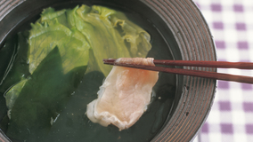 たっぷりのわかめを肉の中にギュッと巻き込んで。甘酸っぱい黒酢だれがよくからんで、驚きのおいしさに。