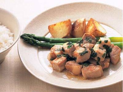 豚肉のうまみをソースにも活用したシンプルなポークソテー。ジューシーな厚切りロース肉に、酸味のきいたソースが相性抜群です。