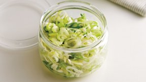 たっぷりのねぎと豚肉の炒め物は、シンプルな塩味に柚子(ゆず)の香りで季節感をプラスします。
