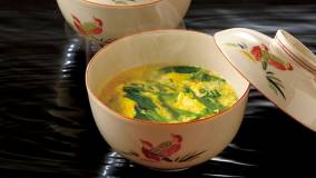 中国風スープでいただく、にらたま入りのあんを包んだギョーザです。スープがあるので、肉なしでも満足!