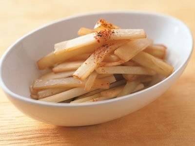 繊維の強いうどと、こんにゃくの食感の違い、独特の春の香りが楽しめるあえ物です。