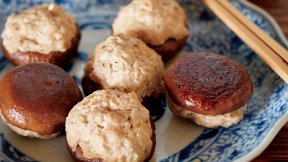 鶏むね肉のひき肉であっさりとした軽い味わいです。長芋を粗みじん切りにして混ぜることで、長芋の水分が肉ダネをしっとりさせます。長芋をすりおろすと肉ダネがしいたけから流れ出てしまうのでご注意を。
