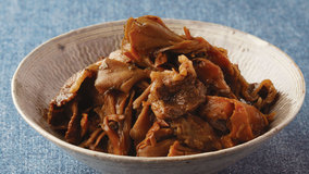 豆板醤でピリッと辛みを効かせます。食べ応えも、ボリュームも満点の一品。