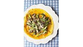 マッシュルームの香ばしいガーリック風味が食欲をそそります。卵にマヨネーズを加えるのが、ふんわりオムレツのコツです。