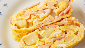 じゃがいもとベーコンがたっぷり入った、満足感のある卵焼きです。ベーコンのうまみでコクのあるおいしさに。