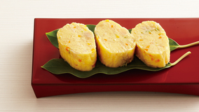 色鮮やかな卵焼きは、上品な甘みで、冷めてもしっとり。油を一度に入れると分離しやすいので気をつけて。