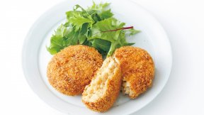 おからパウダーとたまねぎ、鶏ひき肉でつくるメンチカツはあっさりとした味わい。おからパウダーが食材の水分を吸って肉ダネがまとめやすくなります。