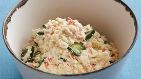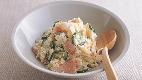 おからパウダーに材料を混ぜるだけで、軽やかなポテトサラダ風になります。加える水や調味料の量と順番がポイントです。