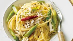 彩りも味わいも春らしいパスタです。むね肉は丁寧に下ごしらえし、サッと火を通すことで、軽やかな仕上がりに。