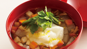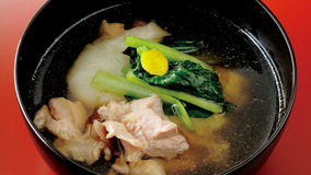 お正月や祝いの席でいただくことの多い椀物・雑煮。ベースとなる汁の味は、出汁をしっかりとったすまし汁や白みそ仕立て、醤油など全国各地でさまざま。具材も焼いた餅を入れる関東風や、里芋や大根などの根菜を入れた関西風など、地方によって特色があります。どれも、郷土色豊かで美味しいものばかり。豊かな日本の食文化を感じさせる、雑煮のレシピをプロの味付けで紹介します。美しい盛り付け雑煮は、おもてなしにもぴったりの料理です。