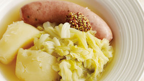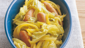 たっぷりのキャベツを蒸し煮にして味をギュッと濃縮に。ソーセージのうまみとビネガーの酸味で、個性派おかずの完成。