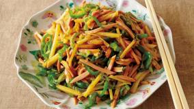 魚肉ソーセージを使い、カロリーを控えながらボリューム感はキープ。新じゃがのシャキシャキ感が楽しいメニューです。