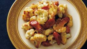 歯ごたえを残すため、カリフラワーは下ゆでせずに直接炒めます。バターとしょうゆの香りやソーセージのうまみが食欲をそそります。