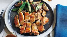 鶏もも肉のソテーは、皮側をじっくり、こんがりと焼くのが重要なポイント。ジューシーな鶏肉に、レモン汁入りのさっぱりとしたねぎ塩だれがよく合います。