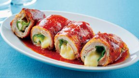 3つの食材でつくる主菜と副菜を兼ねた1品ディナー。驚きのアイデアで手間なく仕上げるボリューム肉巻きは、豚肉とピーマンから、トロ~リ溶け出すチーズがたまりません!