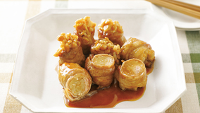アスパラガスの形を生かした定番おかずです。表面の豚肉には甘辛だれがしっかりからみ、中のアスパラガスはやさしい味わい。お弁当のおかずにもおすすめです。